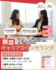 キャリアカウンセリング キャリアカウンセリング1月受付開始!2025.12.19