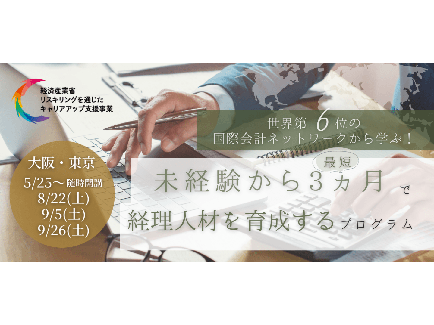 講座情報 5月より開講!未経験から3ヵ月で経理人材を育成するプログラム(大阪・東京で対面開催)2026.03.18